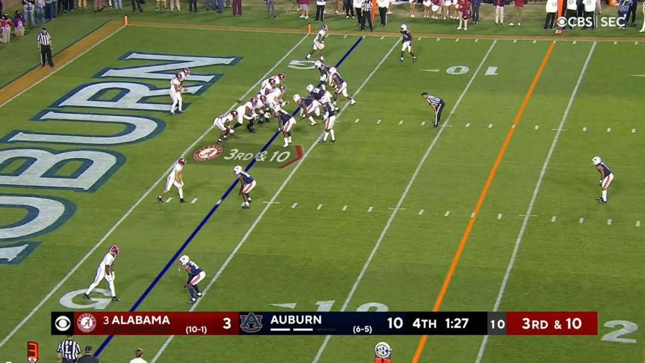 The college football game between Alabama and Auburn had an absolutely as Alabama avoided a major upset on the road, defeating Auburn 24-22 in four overtimes. Alabama trailed 10-3 with about one minute left, but amazingly, Bryce Young led them on a 97 yard touchdown drive with no timeouts left to tie the score at 10-10 and force overtime. Then, each team scored a touchdown and field goal in the first two overtimes to make the score 20-20. In the third overtime each team converted their two point conversion to make it 2-22. Finally, in the fourth overtime Auburn failed to convert and Alabama did convert, giving them a hard fought 24-22 victory over Auburn on the road. With the win, Alabama keeps their playoff hopes alive and improves to 11-1.