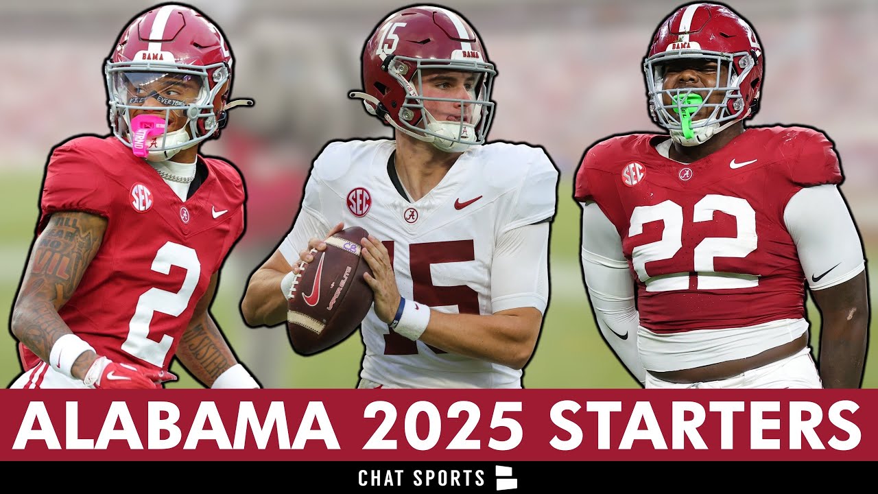 Alabama Football starters for 2025 entering Week 1 of the 2025 college football season predicted by Alabama Football Report host Chris Daughtery. Kalen DeBoer has not yet dropped the Alabama Football 2025 “official” depth chart, but those aren’t always accurate. So we figured we would project who will start / get the most snaps on offense and defense against Florida State. Of course players like Ryan Williams, Ty Simpson and Deontae Lawson will start. But what about players like Geno VanDeMark, Dijon Lee, DaShawn Jones and Keon Keeley?