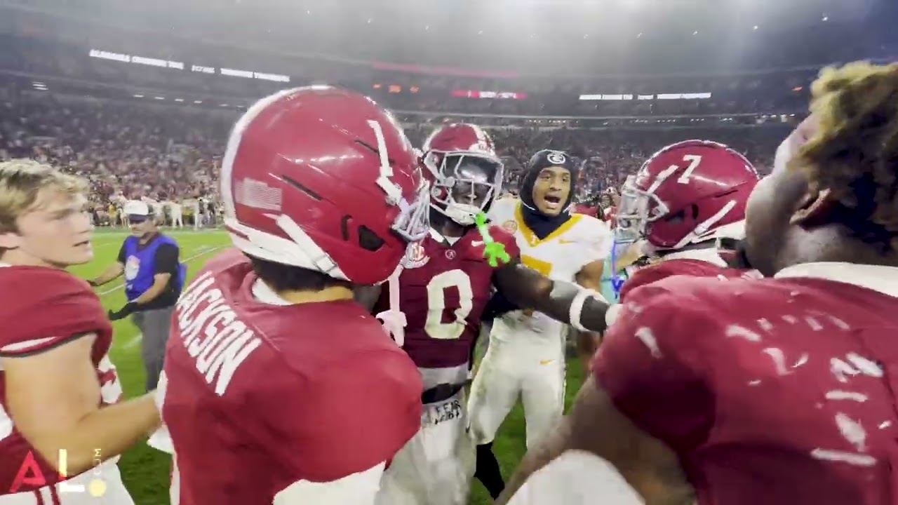 Kalen DeBoer breaks up post-game situation as tempers flare following Alabama’s win over Tennessee.
