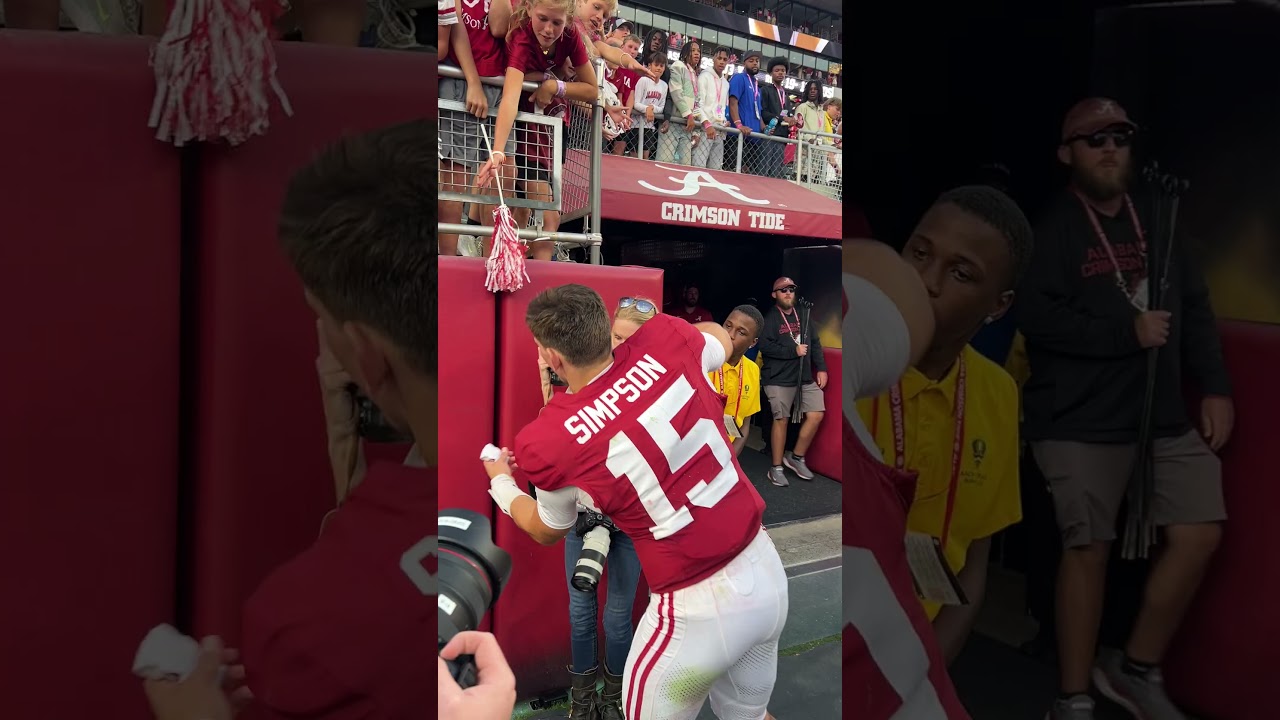 Ty Simpson gave his arm band to a young Alabama fan after the Crimson Tideβs win over Vanderbilt π₯Ί